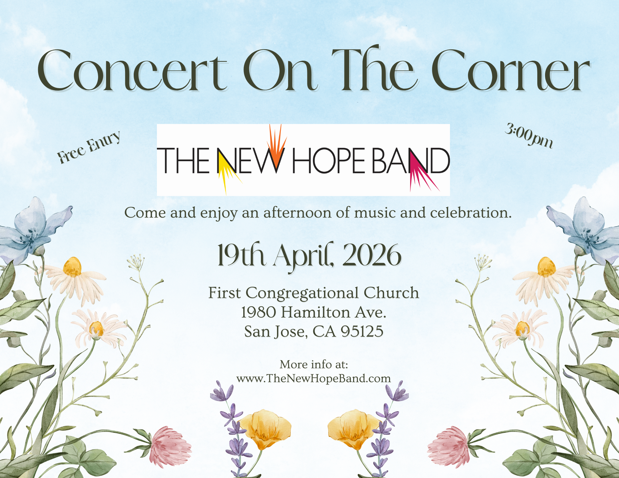 The New Hope Band is a rock band located in San Jose, CA. Each band member has a differing unique ability. They are all talented in their own way. All members share a common purpose and desire. They are committed to bringing enjoyment to their audiences. Most have been performing together since 2008. Each individual loves music and is inspired by performing.